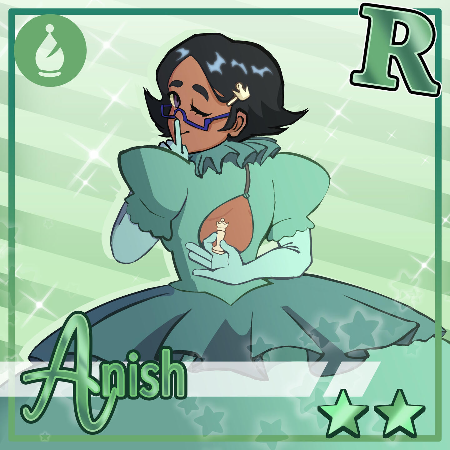 Al principio, mi visión para Queen Castling estaba enfocada en hacer una serie de capturas de pantalla falsas y contar la historia a través de estas, sin embargo, el medio no me dio suficiente libertad para contar historias complejas. Decidí hacer contenido mientras decidía en qué dirección llevar mi trabajo. Hice una serie de cartas de juego gacha falsas, inspiradas en Genshin Impact y Love Live!: School Idol Festival.